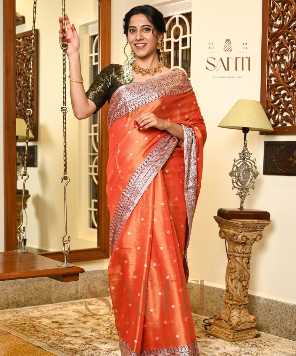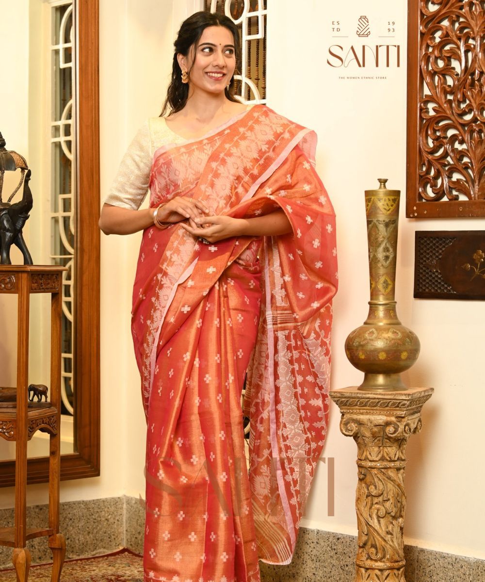 Radiant Vermilion Tissue Jamdani Silk Saree