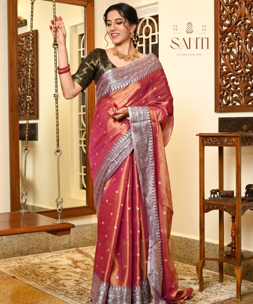 Royal Rose Gold Tissue Jamdani Silk Saree