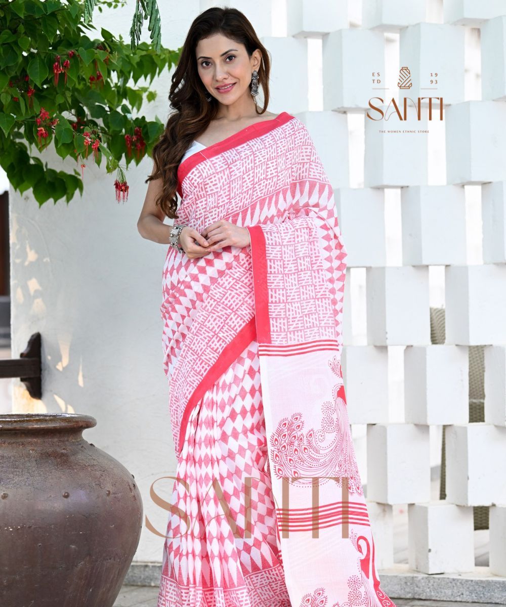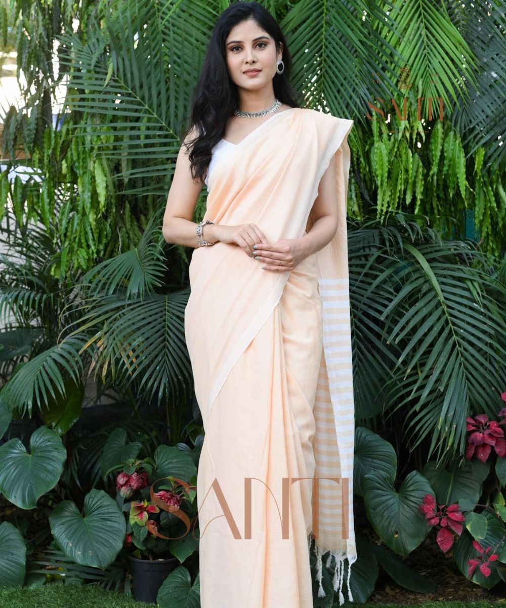 Peach Bliss Soft Mul Cotton Handloom Saree