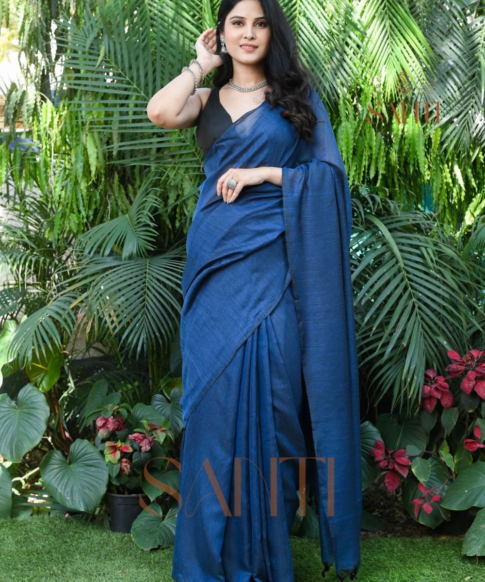 Denim Blue Textured Cotton Saree